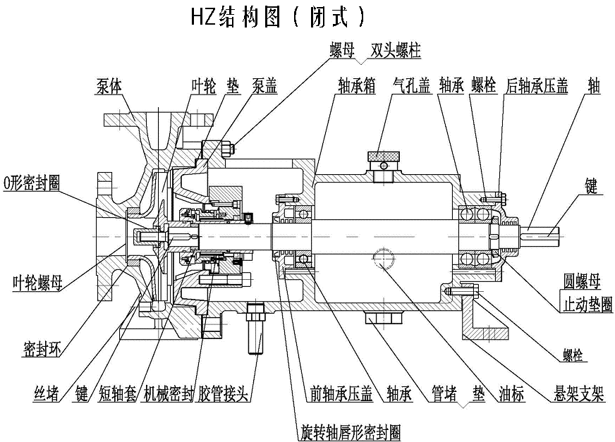 HZ型(閉式葉輪)和HZQ(前開(kāi)式葉輪)化工流程泵是在總結(jié)F1、IH、CZ、ZBG等化工流程泵優(yōu)缺點(diǎn)的基礎(chǔ)上,吸收國(guó)內(nèi)外先進(jìn)的泵技術(shù),全新開(kāi)發(fā)設(shè)計(jì)的單級(jí)單吸懸臂式離心泵。該泵具有性能優(yōu)良,抗汽蝕性能好,承載能力強(qiáng),機(jī)封和軸承壽命長(zhǎng),運(yùn)行可靠,結(jié)構(gòu)新穎,檢修方便等特點(diǎn)。